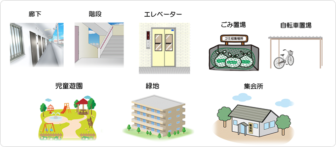 - 共用部分の電灯のうち廊下灯、階段灯、ピロティ灯など高所以外の電灯の交換