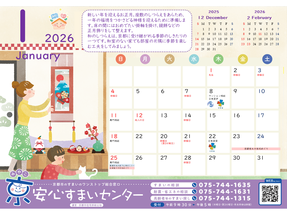 <1ヶ月/A4ヨコ> すまいに関する豆知識 掲載あり(毎月更新) ※2025年11月・2025年12月のカレンダーはこちら(PDF)