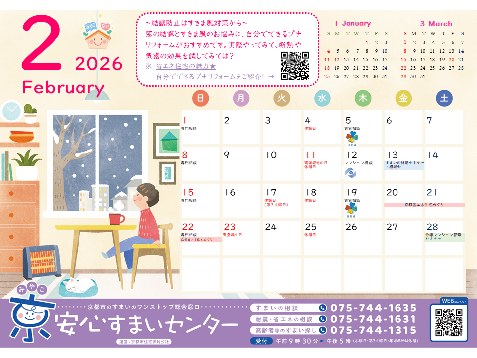 <1ヶ月/A4ヨコ> すまいに関する豆知識 掲載あり(毎月更新) ※2025年12月・2026年1月のカレンダーはこちら(PDF)