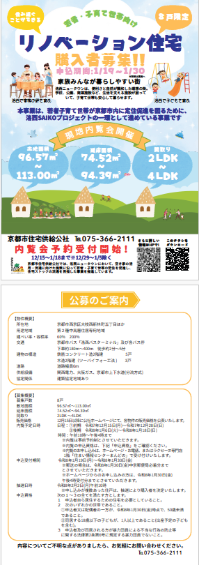 若者・子育て世帯へ向けた住み継ぐリノベーション住宅の購入者を募集します。